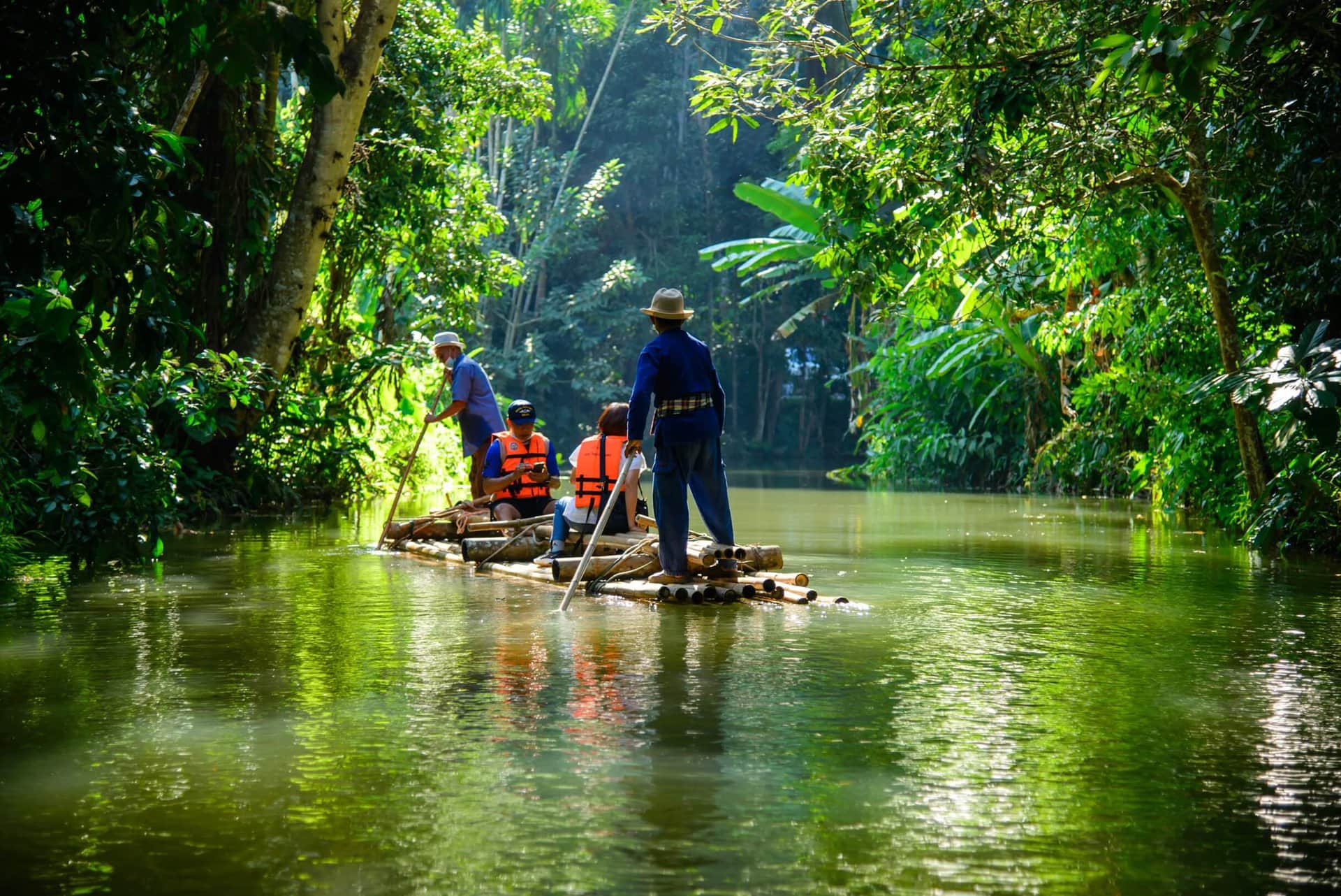 Następnie spłyniemy bambusową tratwą w dół rzeki.