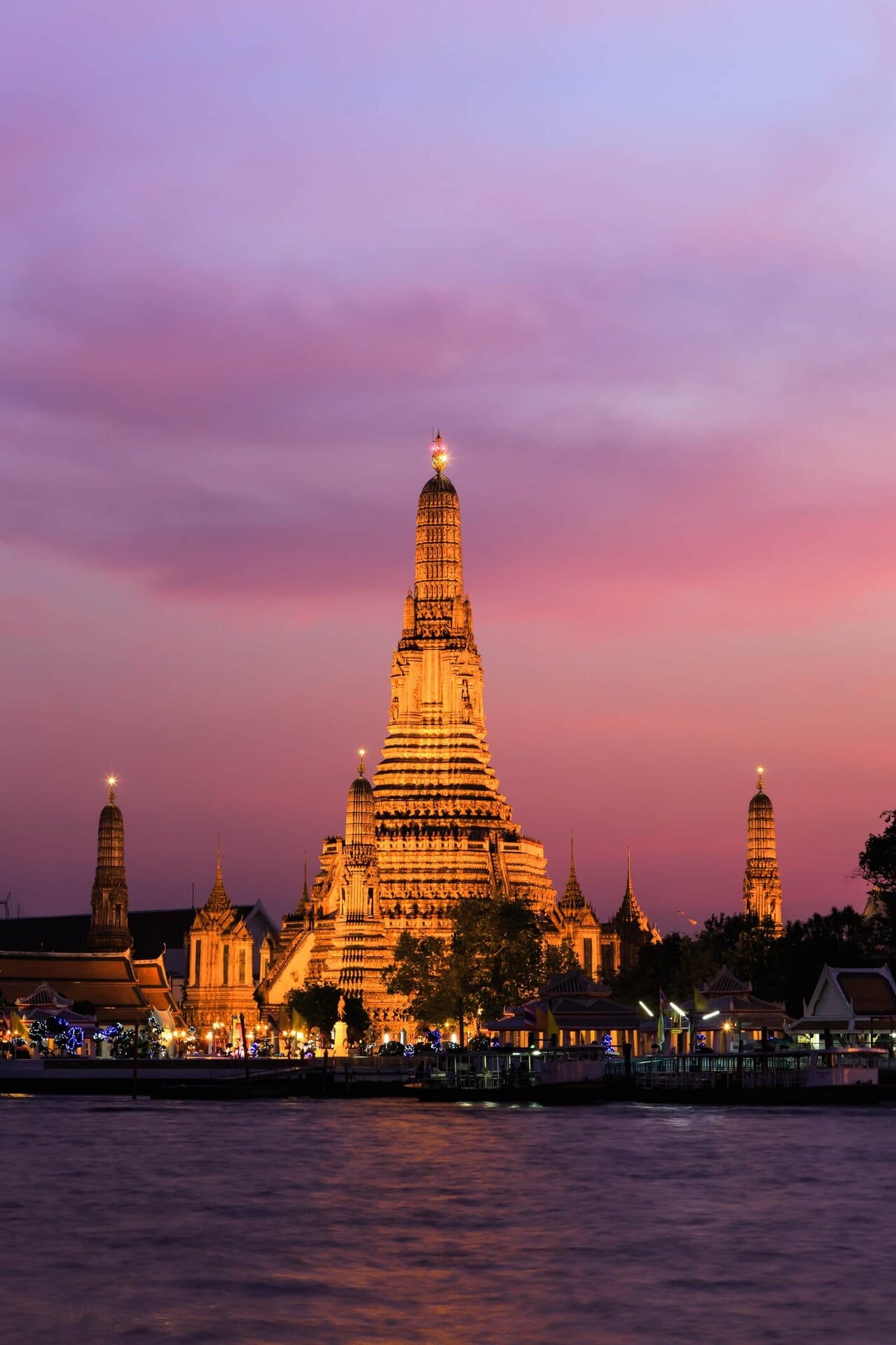 Podejdziemy do Wat Arun, czyli Świątyni Świtu w Bangkoku. To świątynia z wysoką, bogato zdobioną wieżą prang, stojącą nad brzegiem rzeki Chao Phraya. Będziemy tam podziwiać zachód słońca.
