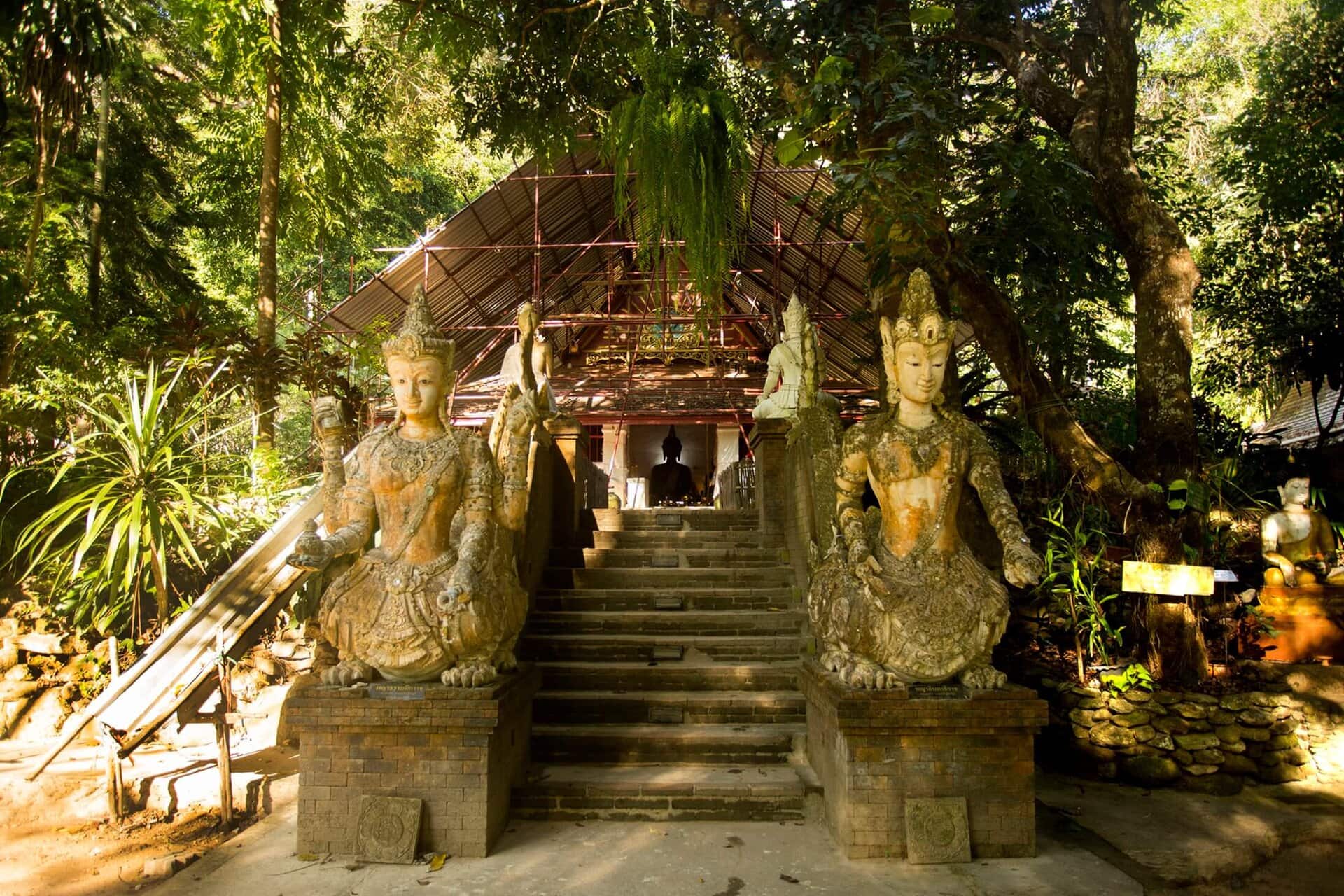 Monk’s Trail to krótka, spokojna ścieżka prowadząca przez las do Pha Lat – świątyni ukrytej wśród bambusów i skał. To miejsce jest jednym z najbardziej symbolicznych punktów Chiang Mai, bo łączy naturę z duchowym spokojem.