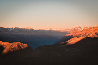 Magiczny wschód: Zobaczysz słońce wschodzące nad ośnieżonymi szczytami Himalajów.