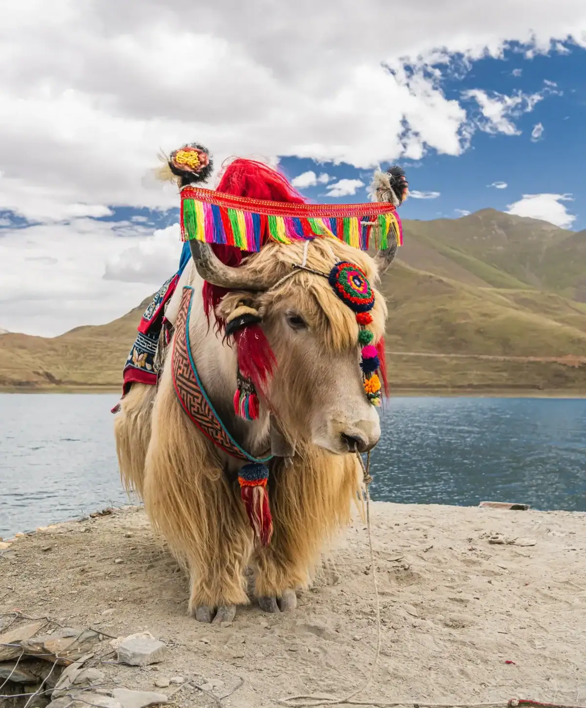 Opuszczając Lhasę, trasa prowadzi przez przełęcz Khamba La, skąd zobaczysz jezioro Yamdrok — turkusową taflę wody otoczoną ośnieżonymi szczytami, zmieniającą barwy od szmaragdowej zieleni po głęboki szafir. Dalej zobaczysz lodowiec Karola, którego czoło sięga zaledwie 300 metrów od drogi.
