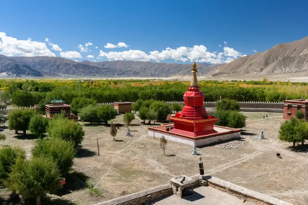 Zwiedzimy Klasztor Pelkhor Choede. Zbudowany w XV wieku w Gyantse, klasztor zasłynął przede wszystkim ze swojej architektonicznej perły – stupy Kumbum. Licząca 32 metry wysokości Kumbum to największa stupa w Tybecie. Zawiera ponad 10 000 posągów i malowideł Buddy.