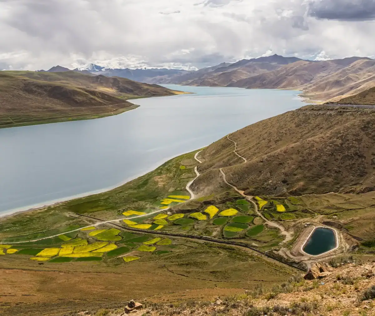 Zatrzymasz się na wysokich przełęczach i zobaczysz jezioro Yamdrok, jedno z najpiękniejszych w Tybecie