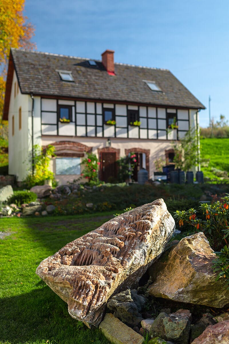 Zamieszkasz w Winnicy Agat – ponad stuletniej agroturystyce we wsi Sokołowiec na Pogórzu Kaczawskim. To wyjątkowe miejsce: jedyna w Polsce winnica położona bezpośrednio na stoku wygasłego wulkanu, na terenie Światowego Geoparku UNESCO. Wulkaniczne podłoże sprawia, że w okolicznej glebie znajdywane są agaty, jaspisy, ametysty i kryształy górskie – od agatu wzięła też nazwę cała winnica. Uprawia się tu odmiany białe i czerwone, a lokalne wina zdegustujemy podczas wyprawy.