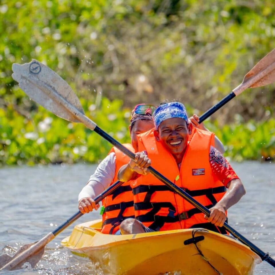 • udamy się nad jezioro Tonle Sap, gdzie kajakami przepłyniemy przez lasy namorzynowe i wioskę na wodzie – Mechrey. Będziemy mogli zobaczyć z zewnątrz szkołę oraz lokalny kościół – wszystko na unoszących się na wodzie beczkach. Jeśli warunki pogodowe i poziom wody będą sprzyjać, będziemy mogli popływać kajakami. Zależnie od pory roku poziom wody zwiększa się lub obniża, a to wszystko przez zmieniający się nurt rzeki